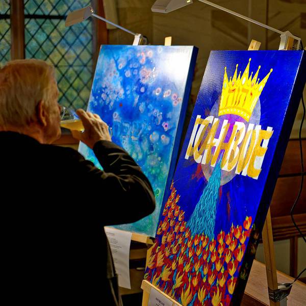 In einem kurzen Interview erklärte Frank Steinraths, Vorsitzender des Vereins KUNST + GLAUBE e.V. und Landtagsabgeordneter, die Idee hinter dem
