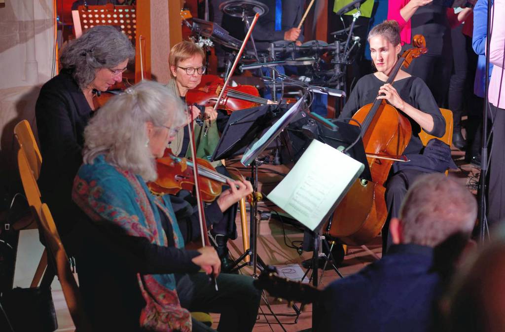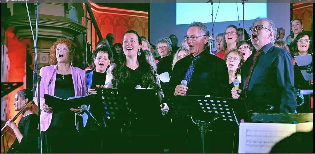 Um 18:00 Uhr begann das musikalische Hauptprogramm, gestaltet vom Projektchor des Vereins KUNST + GLAUBE gemeinsam mit Bläsern der Uni-Big-Band Siegen und dem Philharmonischen Streichquartett Bad Nauheim. Unter der Leitung von Komponist und Musikproduzent Jochen Rieger entstand ein facettenreiches Klangbild zwischen Pop, Gospel, Klassik und Anbetung – mitreißend, emotional und tiefgründig.