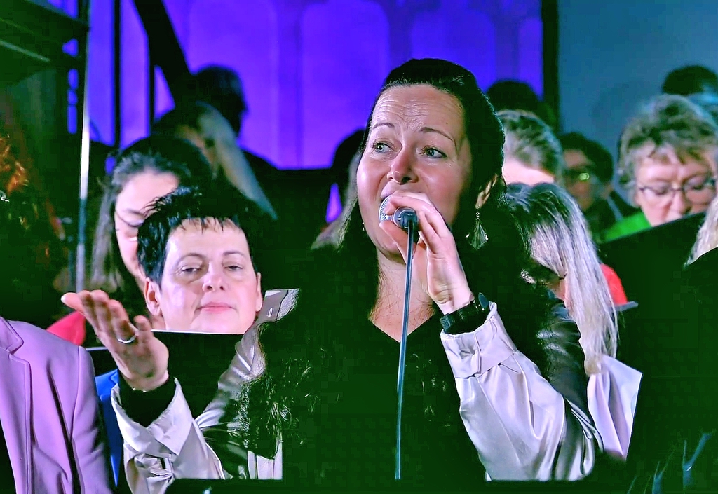 Im Lichtspiel wechselnder Farben erstrahlte der Kirchenraum in einem warmen, lebendigen Glanz. Die Besucherinnen und Besucher zeigten sich erfüllt von Dankbarkeit und begeistert von einem Abend, der Musik, Theologie und Kunst zu einer Einheit verschmolz.