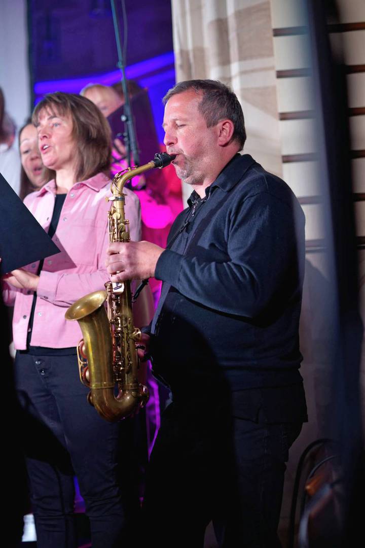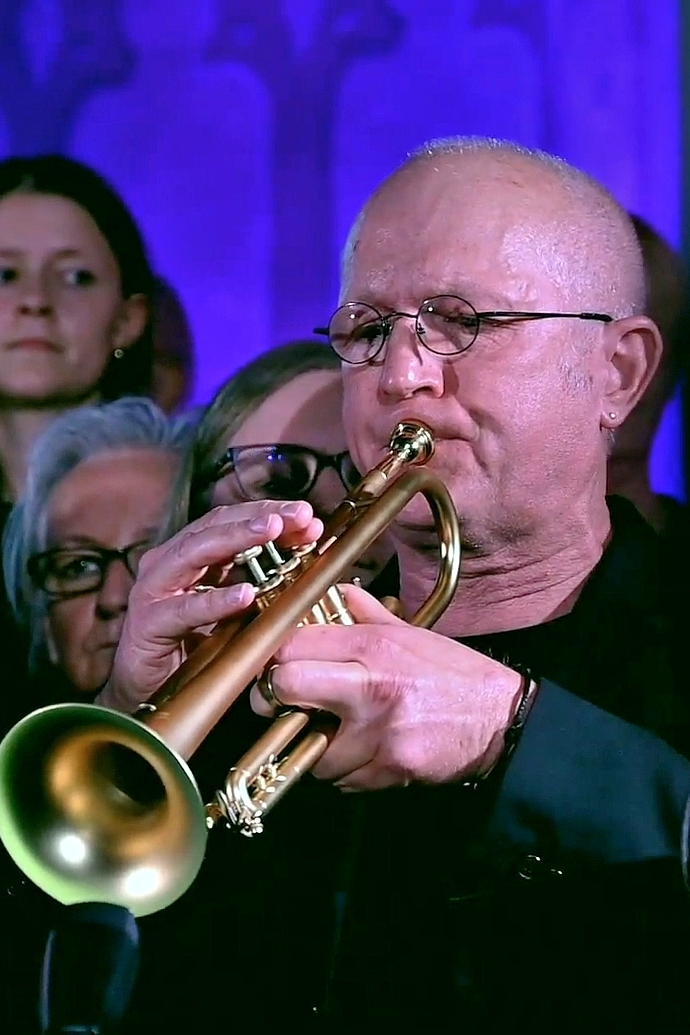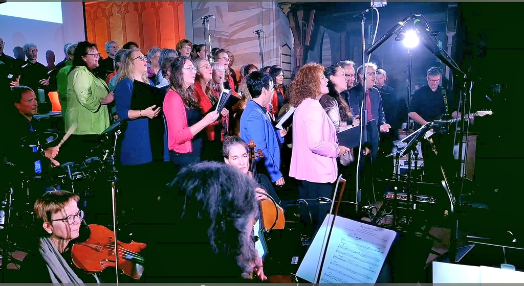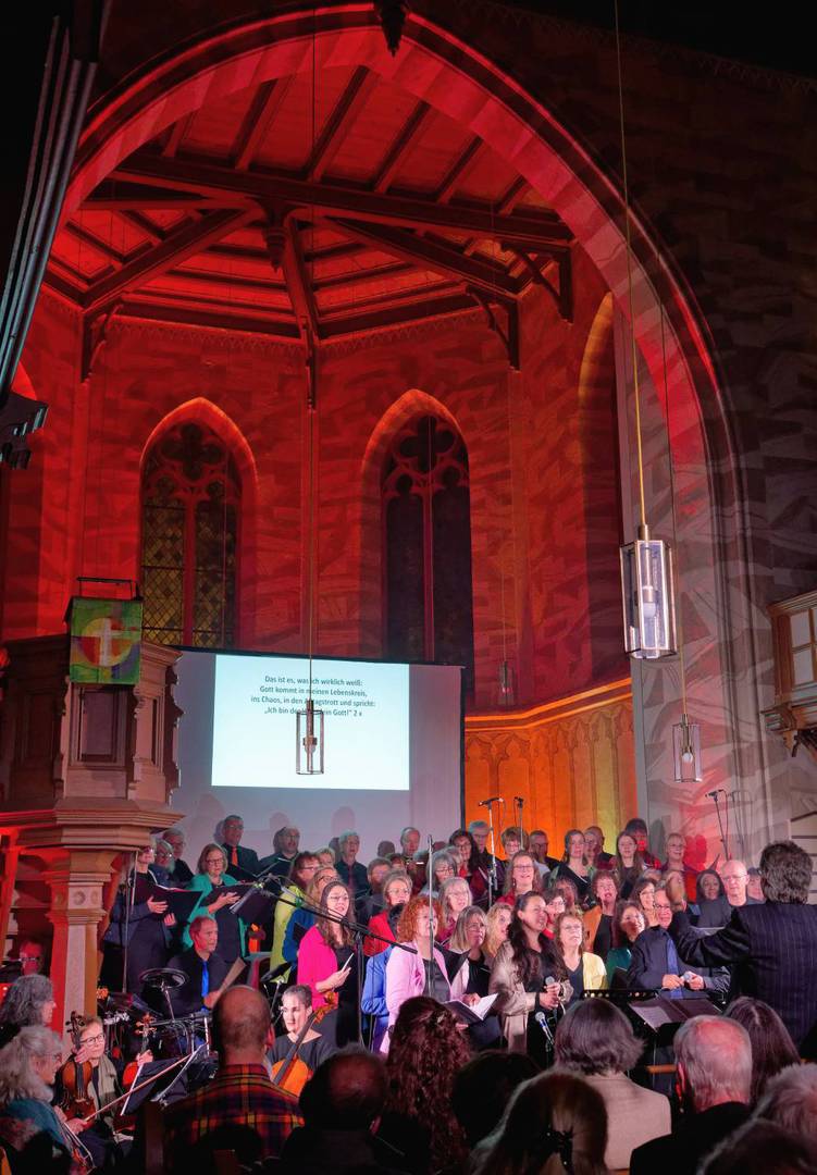 Um 18:00 Uhr begann das musikalische Hauptprogramm, gestaltet vom Projektchor des Vereins KUNST + GLAUBE gemeinsam mit Bläsern der Uni-Big-Band Siegen und dem Philharmonischen Streichquartett Bad Nauheim. Unter der Leitung von Komponist und Musikproduzent Jochen Rieger entstand ein facettenreiches Klangbild zwischen Pop, Gospel, Klassik und Anbetung – mitreißend, emotional und tiefgründig.